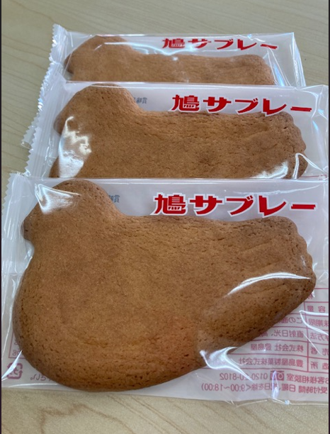 ビスケットをヒントに、鶴岡八幡宮にちなんで鳩の形にした