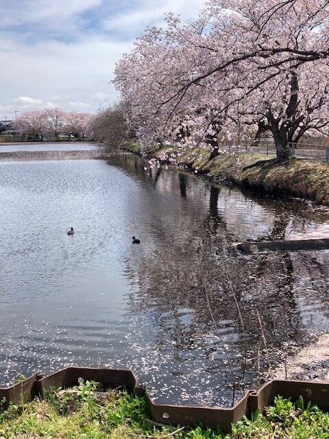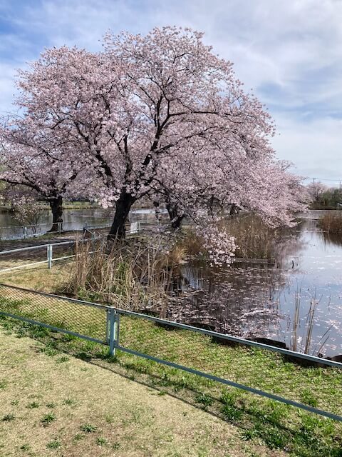 お昼休憩中に、「宮の池公園」の桜が満開で♪