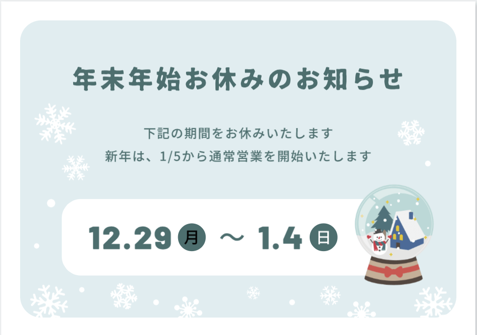 休業期間:2025年12月29日(月)~2026年1月4日(日)