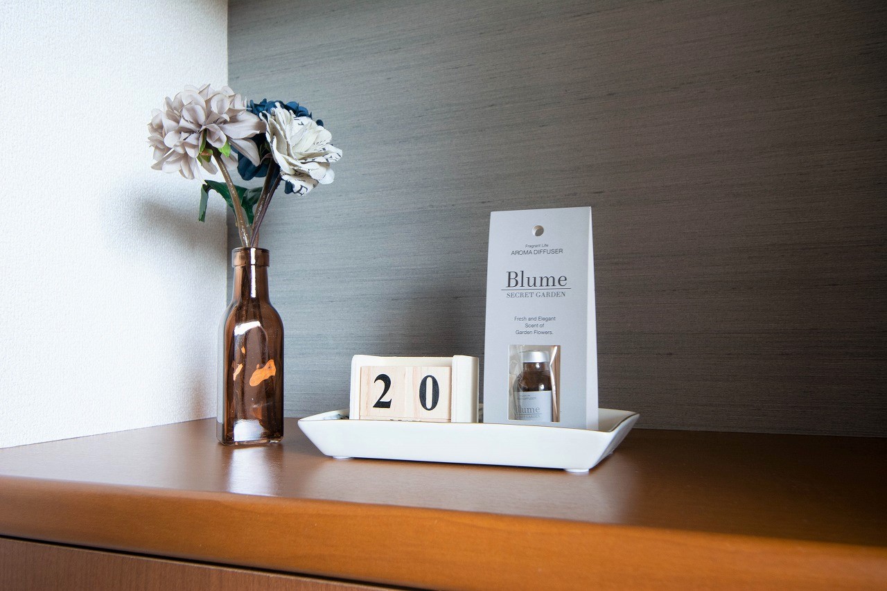 新生活をイメージして頂けるように、中に、家具や小物を設置しています。